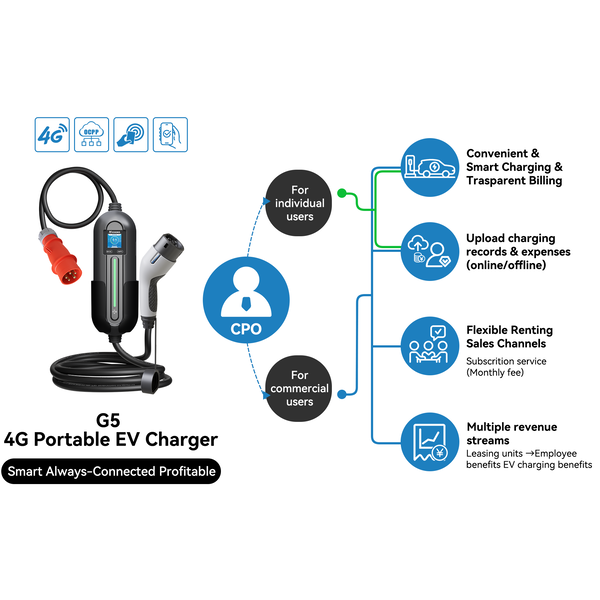 Soolutions ToGo tragbares EV Ladegerät 22 kW mit Typ 2, OCPP, RFID und App. Perfekt für Zuhause, Arbeit oder Reisen. Mit ChargeBack Ladekosten abrechnen und bis zu 65% bei Installations- und Roamingkosten sparen.